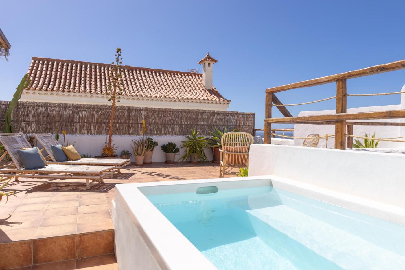 Charming house with Rooftop Pool, que cuenta con piscina al aire libre, jardÃn y terraza, ofrece alojamiento en Agaete con wifi gratis y vistas al mar. El alojamiento ofrece vistas a la montaña y a la piscina y está a 1,4 km de Playa Dedo de Dios.