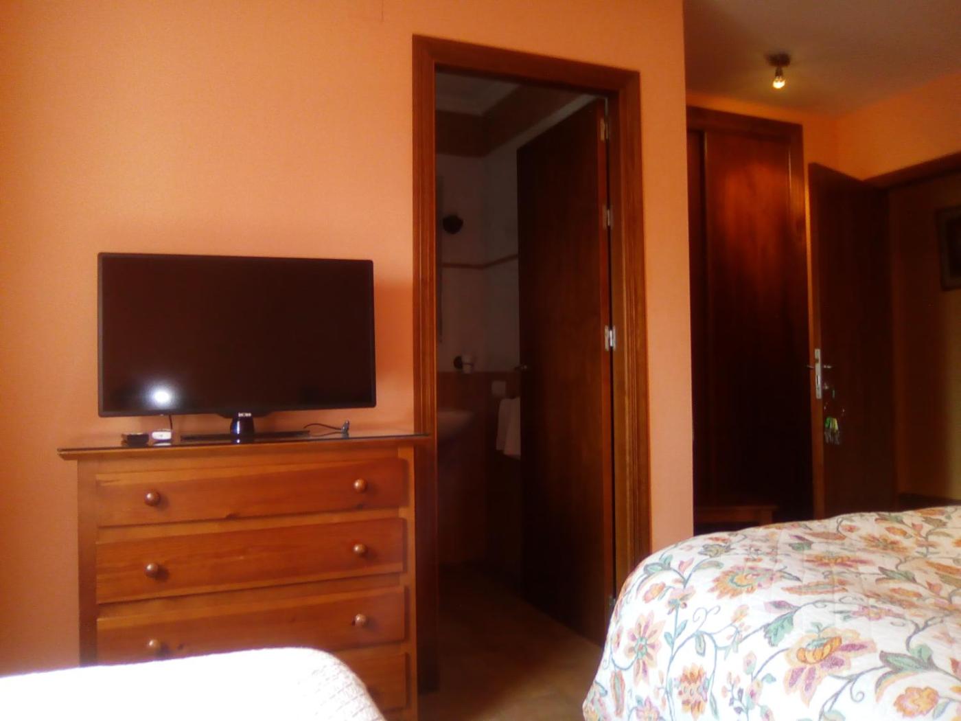 Habitación Doble con baño compartido. Esta habitación doble cuenta con acceso a un baño compartido situado en el pasillo.