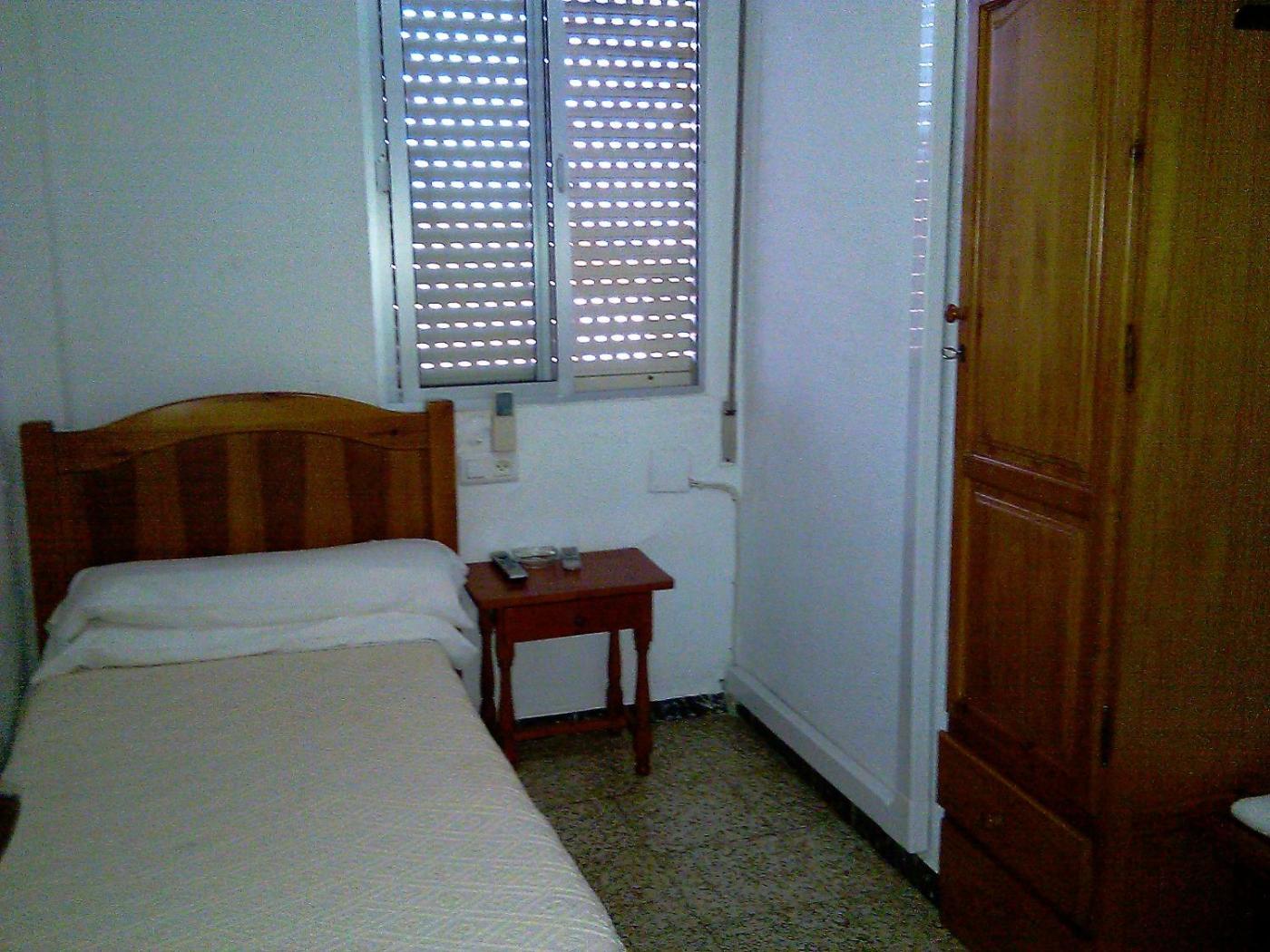 Habitación Individual con baño compartido. Esta habitación básica tiene aire acondicionado, armario, TV y acceso a un baño compartido. Algunas habitaciones dan al exterior. ;