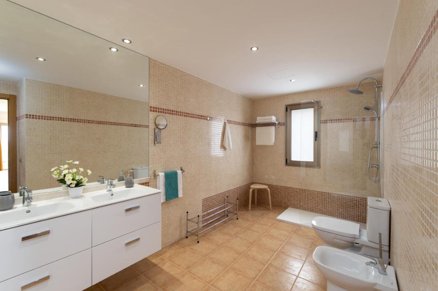 La villa dispone de 5 dormitorios, una cocina con lavavajillas y microondas, y 5 baños con ducha, secador de pelo y lavadora. Hay toallas y ropa de cama en la villa.