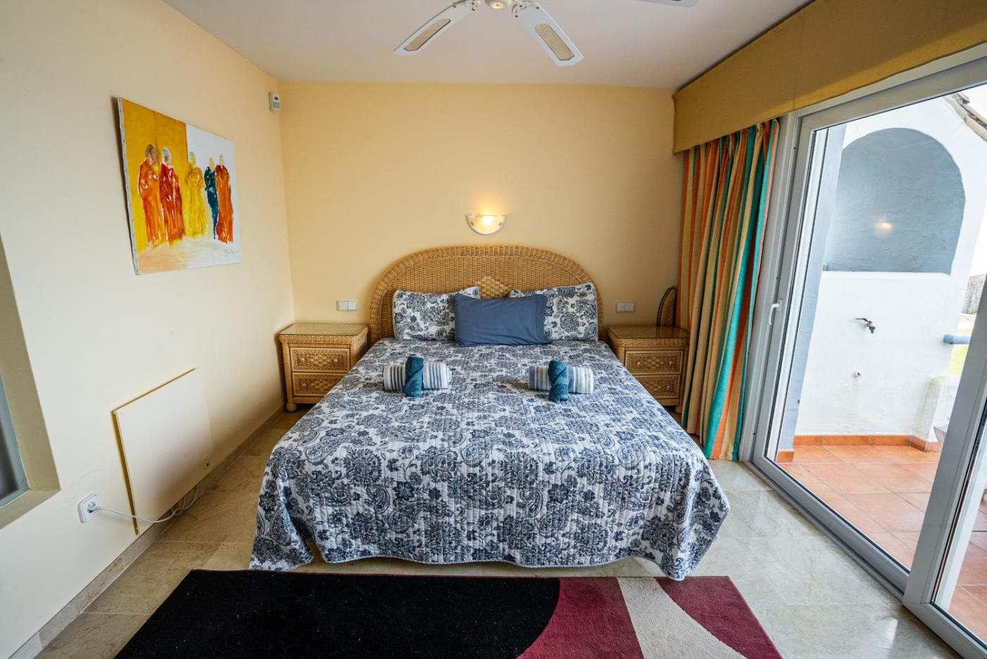 Esta casa o chalet con aire acondicionado consta de 2 dormitorios, una sala de estar, una cocina totalmente equipada con nevera y cafetera, y 2 baños con bidet y ducha. Hay toallas y ropa de cama en la casa o chalet.