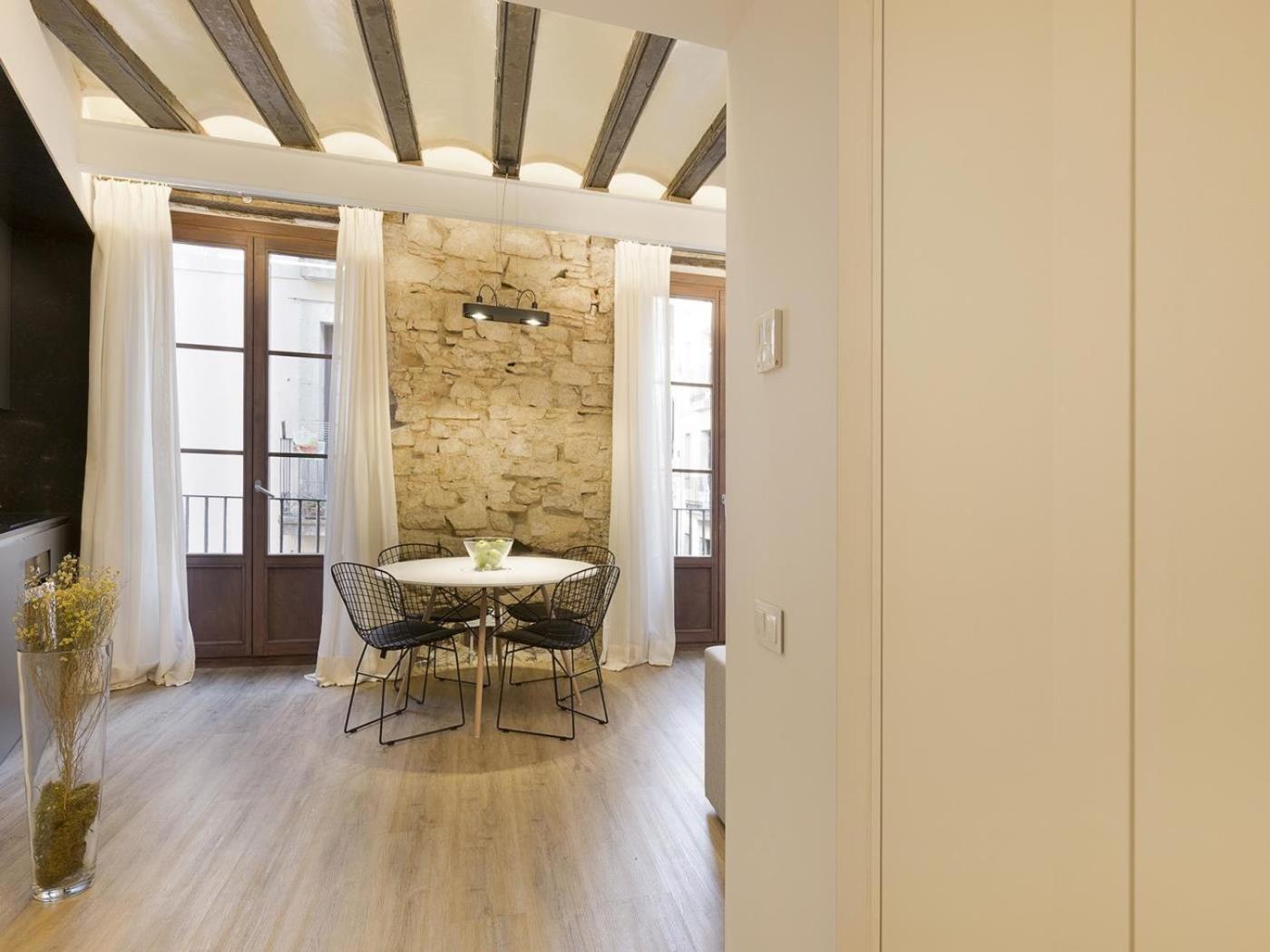 Todos los apartamentos del Borne Apartments Barcelona - Decimonónico presentan una decoración moderna, elegante y sofisticada con elementos originales, como vigas de madera y paredes de piedra a la vista.