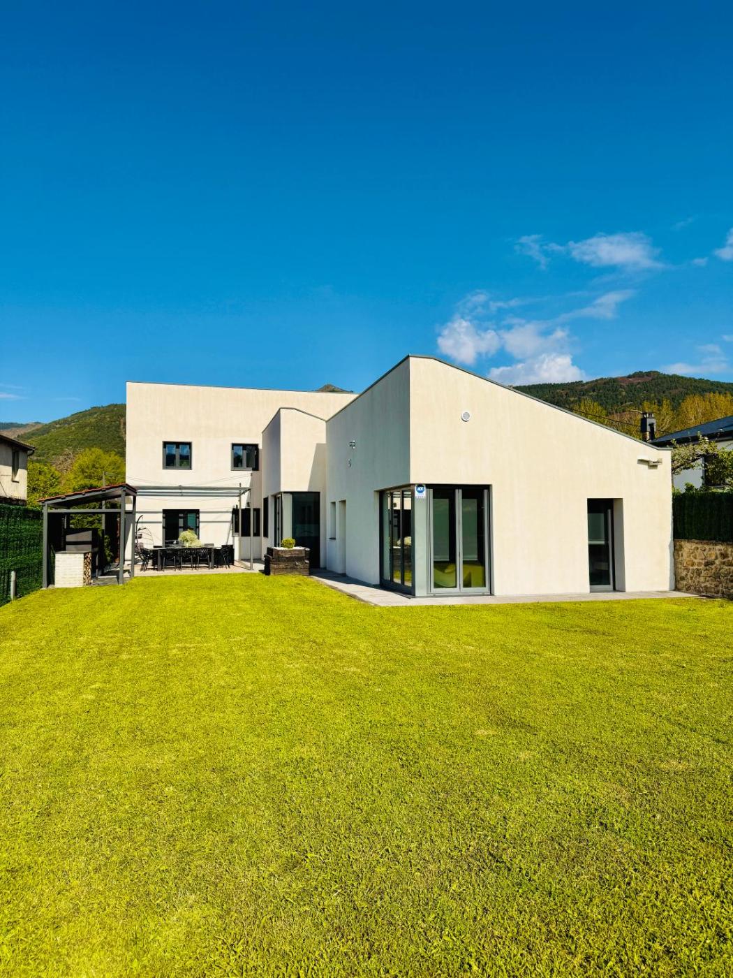 La casa o chalet tiene 4 dormitorios, 4 baños, ropa de cama, toallas, TV de pantalla plana, zona de comedor, cocina totalmente equipada y terraza con vistas a la montaña.