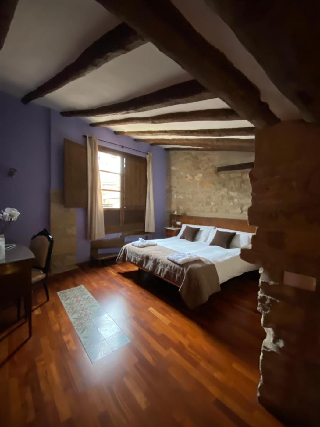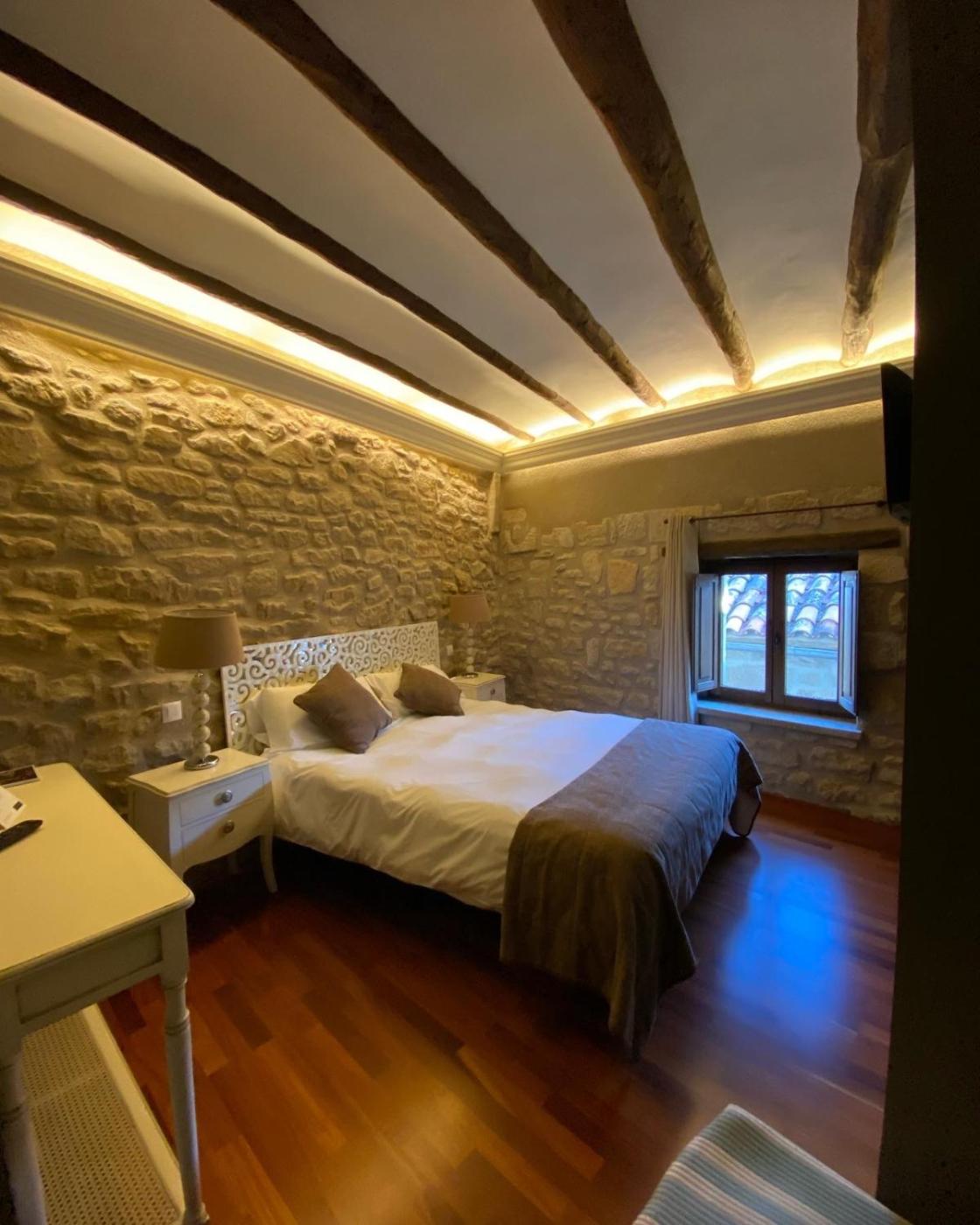 Todas las habitaciones tienen vistas a la plaza principal de la ciudad y a la campiña de los alrededores. Todas están insonorizadas y disponen de aire acondicionado y TV de pantalla plana. También tienen baño privado y balcón. Presentan una decoración exclusiva con muebles clásicos, paredes de piedra y vigas de madera.