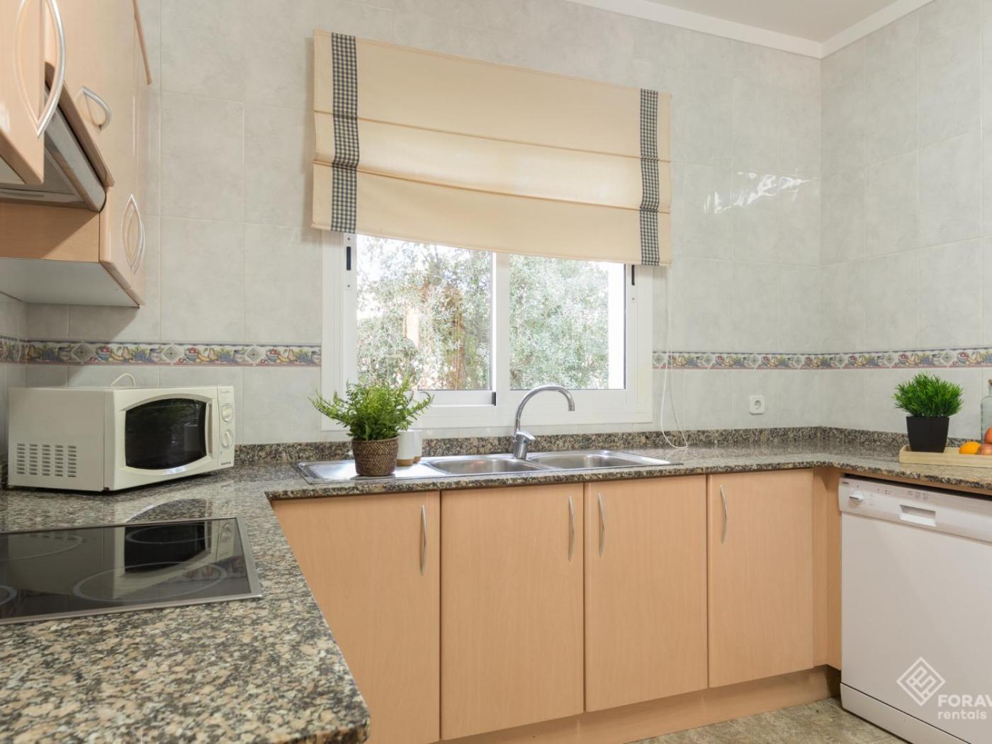 La villa dispone de 4 dormitorios, 3 baños, ropa de cama, toallas, TV, zona de comedor, cocina totalmente equipada y terraza con vistas a la piscina.