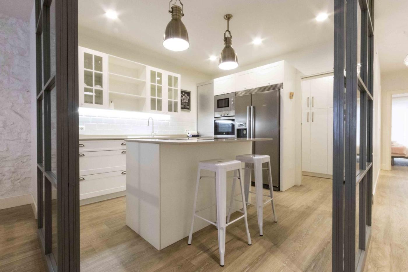Apartamento. This spacious apartment features 4 bedrooms, a kitchen and 3 bathrooms with a bath and a shower. The well-fitted kitchen has a refrigerator, a dishwasher, kitchenware and an oven. The apartment features a washing machine, a tea and coffee maker, heating, as well as a TV. The unit has 8 beds.