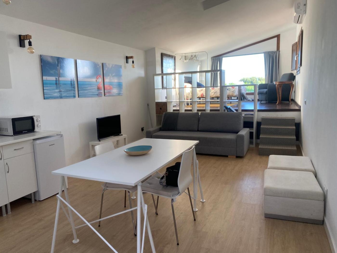 Estudio. The studio offers air conditioning, a coffee machine, as well as a private bathroom featuring a bath or a shower and a hairdryer. The studios kitchen, which features a stovetop, is available for cooking and storing food. A sofa, a flat-screen TV, a dining area and heating are featured in this studio. The unit offers 1 bed.