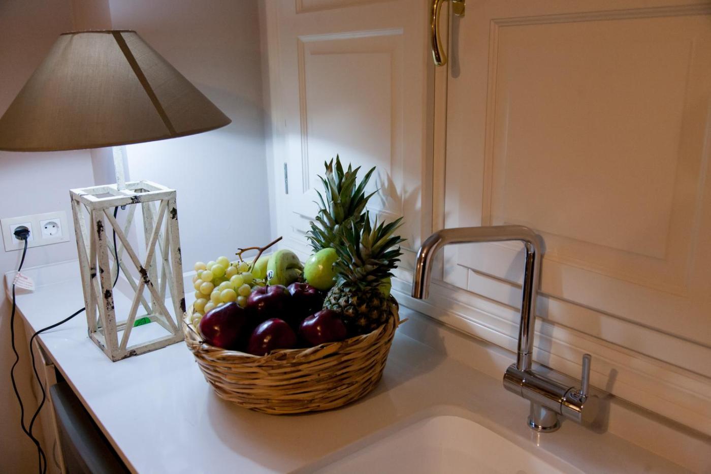 Estudio Superior. Este estudio está situado en el ático y cuenta con 2 camas individuales y sala de estar con sofá cama y TV vía satélite. El baño incluye ducha y secador de pelo. La cocina está equipada con fogones, hervidor, cafetera y microondas. También se proporciona WiFi gratuita y caja fuerte. ;