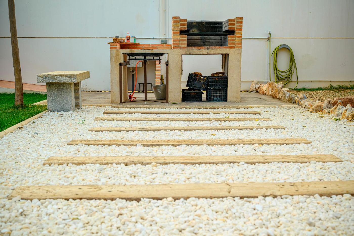 Casa de 5 dormitorios. Esta casa tiene piscina privada. Esta casa dispone de entrada privada, aire acondicionado, sala de estar, 5 dormitorios independientes y 3 baños con ducha y secador de pelo. La cocina está bien equipada con nevera, lavavajillas, utensilios y horno. La casa dispone de barbacoa. La casa es amplia e incluye lavadora, teteracafetera, zona de estar y terraza con vistas al jardín. Tiene 12 camas.