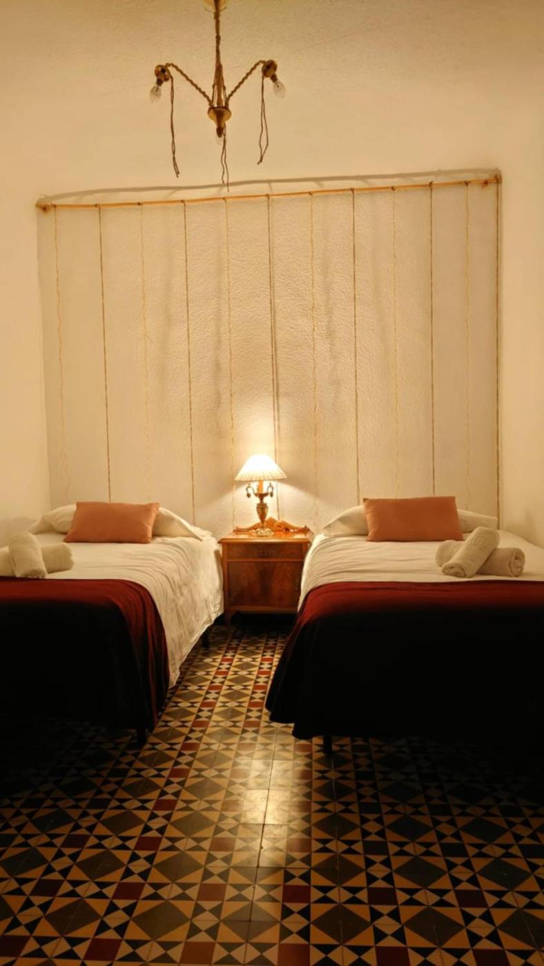 Habitación Doble con baño compartido. The double room features a seating area, a wardrobe, a balcony with a quiet street view as well as a shared bathroom boasting a shower. The unit has 2 beds.