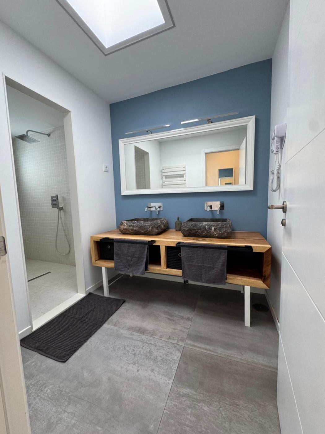 Habitación Doble con baño privado. The double room features a seating area, a wardrobe, a terrace with garden views as well as a private bathroom boasting a walk-in shower. ;