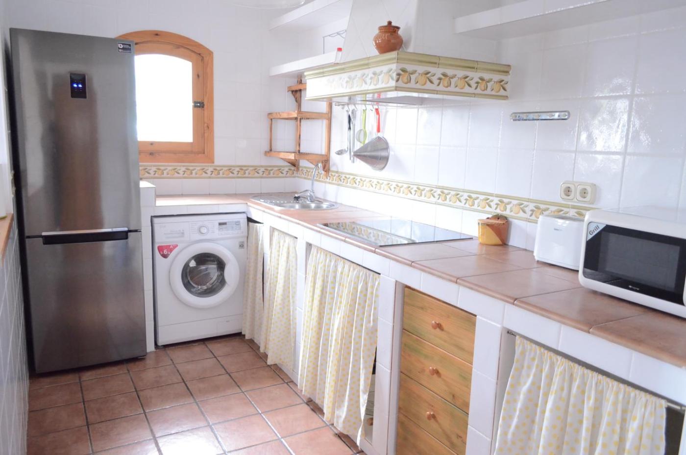Casa de 2 dormitorios. Dirección: Calle Arbolete, 8-B Esta casa cuenta con terraza privada, barbacoa, WiFi gratuita, zona de salón comedor con TV y zona de cocina con microondas, fogones y lavadora. Se facilitan toallas y ropa de cama. La piscina se encuentra en un edificio anexo. ;