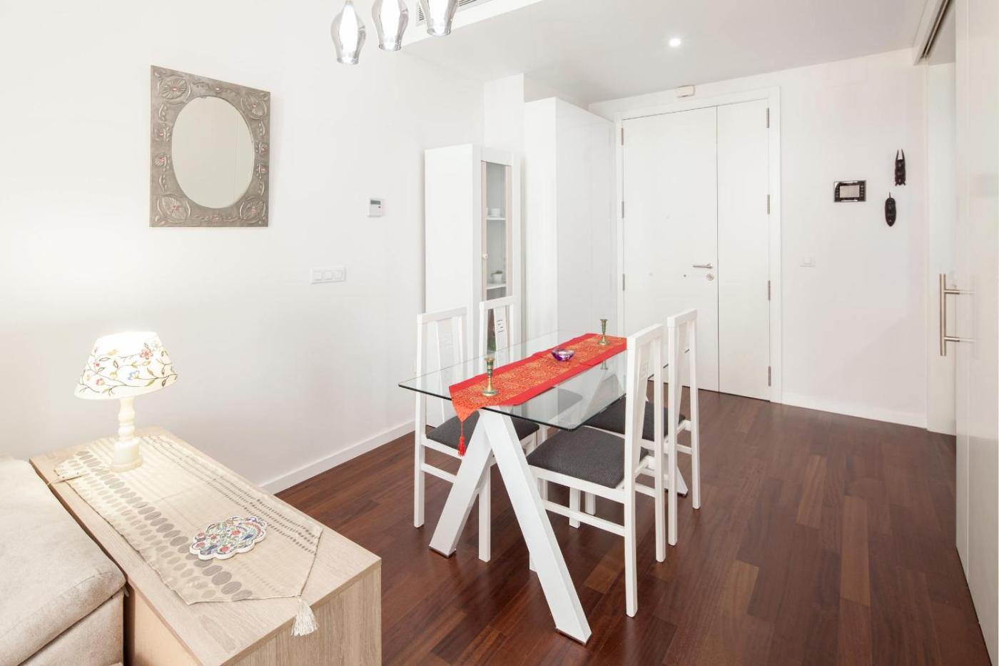 Apartamento Deluxe. Featuring a private entrance, this air-conditioned apartment consists of a kitchen, 1 bedroom and 1 bathroom with a shower and a hairdryer. Guests can make meals in the kitchen that is equipped with a stovetop, a refrigerator, kitchenware and an oven. This wheelchair accessible apartment features a washing machine, a seating area with a flat-screen TV and a roll-in shower. The unit offers 1 bed.