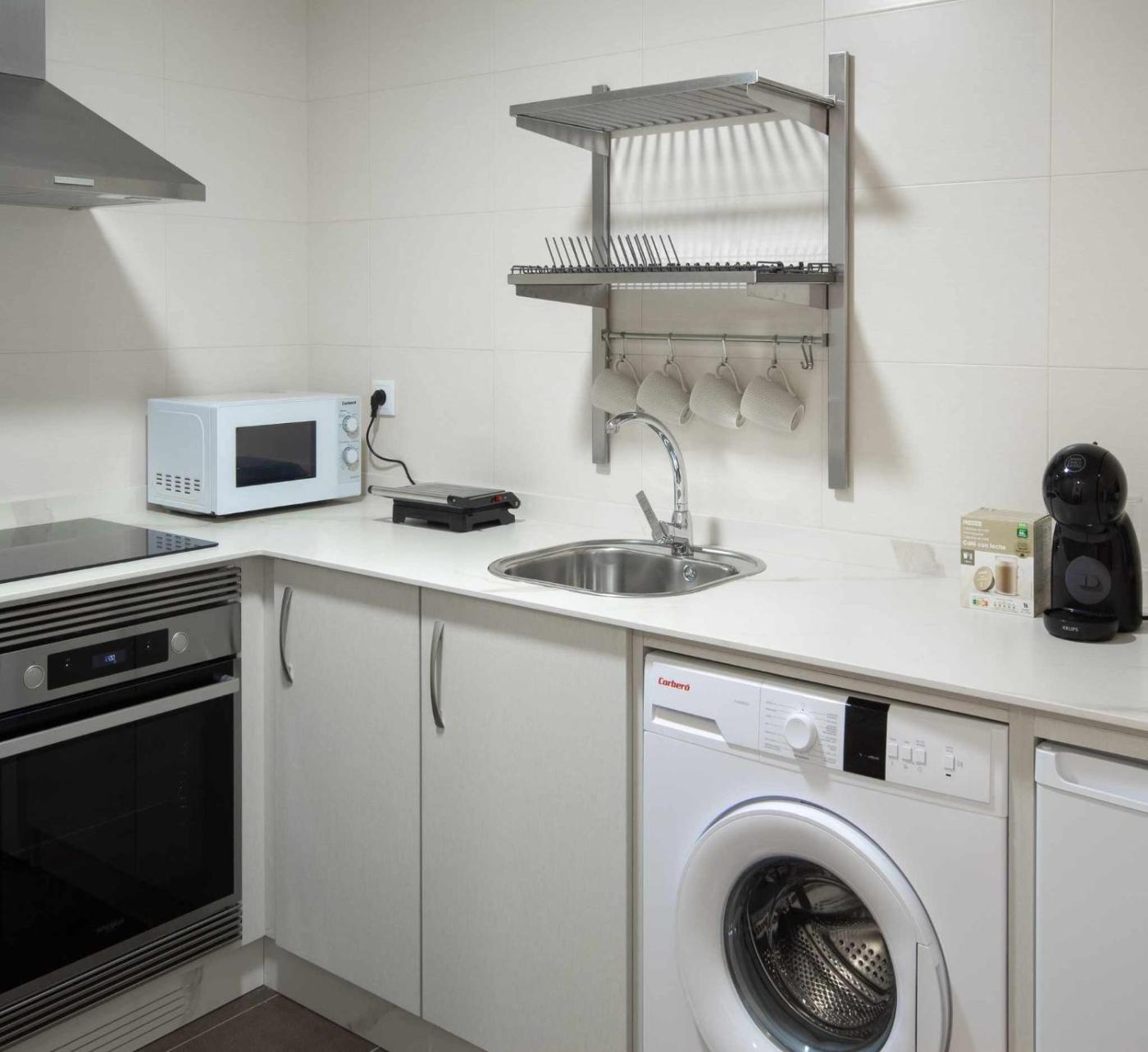 Apartamento de 1 dormitorio. This apartment consists of 1 living room, 1 separate bedroom and 1 bathroom with a shower and bathrobes. Guests can make meals in the kitchen that is equipped with a refrigerator, kitchenware, an oven and a microwave. The apartment features parquet floors, a seating area with a flat-screen TV, a washing machine, a coffee machine as well as sea views. The unit offers 2 beds.