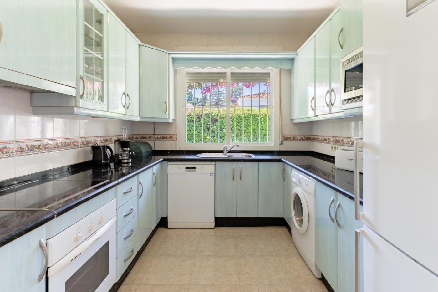 La villa dispone de 5 dormitorios, 4 baños, ropa de cama, toallas, TV con canales vÃa satélite, cocina totalmente equipada y terraza con vistas al jardÃn.
