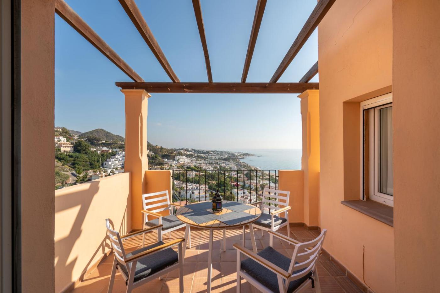 Chalet con vistas al mar y piscina está en Mojácar, a solo 7 min a pie de Playa de Ventanicas - Venta del Bancal, y dispone de alojamiento frente a la playa con piscina al aire libre, jardín, zona de playa privada y wifi gratis. Este alojamiento ofrece piscina privada y parking privado gratis.