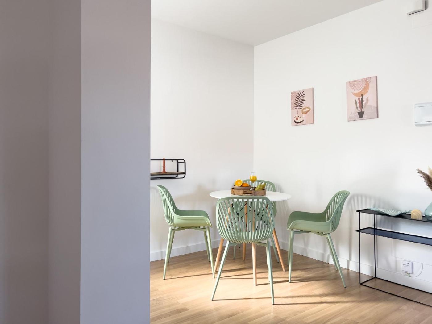 Este apartamento tiene aire acondicionado y incluye zona de comedor, cocina con nevera y TV de pantalla plana. Hay toallas y ropa de cama en el apartamento.