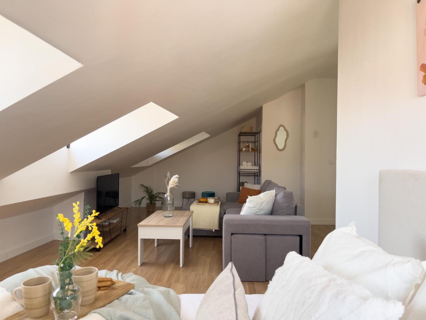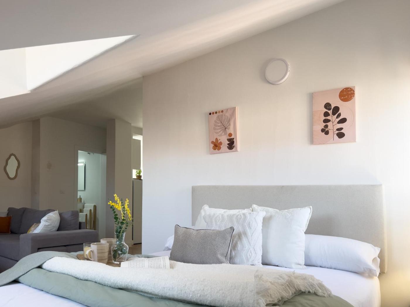 Estudio con 1 cama grande. The studio features air conditioning, a washing machine, as well as a private bathroom boasting a bath and a shower. Meals can be prepared in the kitchen, which features a stovetop, a refrigerator, a dishwasher and kitchenware. The studio provides a tea and coffee maker, a dining area, a wardrobe, a sofa and a flat-screen TV. The unit has 1 bed.