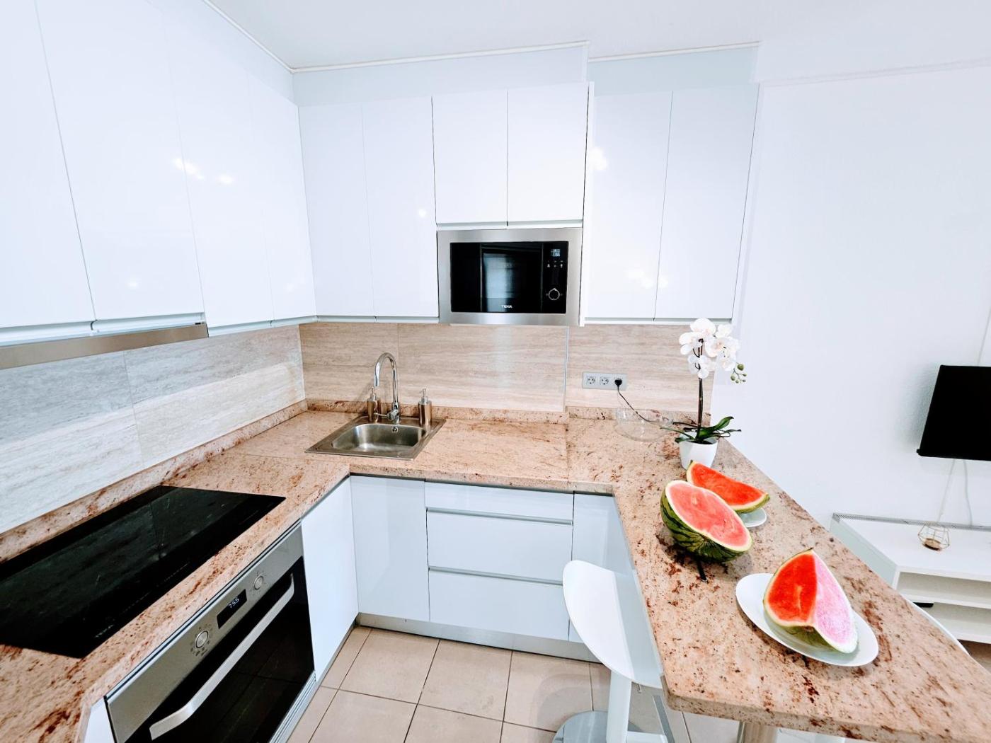 Apartamento de 1 dormitorio. Boasting a private entrance, this apartment features 1 living room, 1 separate bedroom and 1 bathroom with a shower and a hairdryer. Guests can make meals in the kitchen that has a stovetop, a refrigerator, kitchenware and an oven. Featuring a terrace with sea views, this apartment also features a washing machine and a flat-screen TV. The unit has 2 beds.