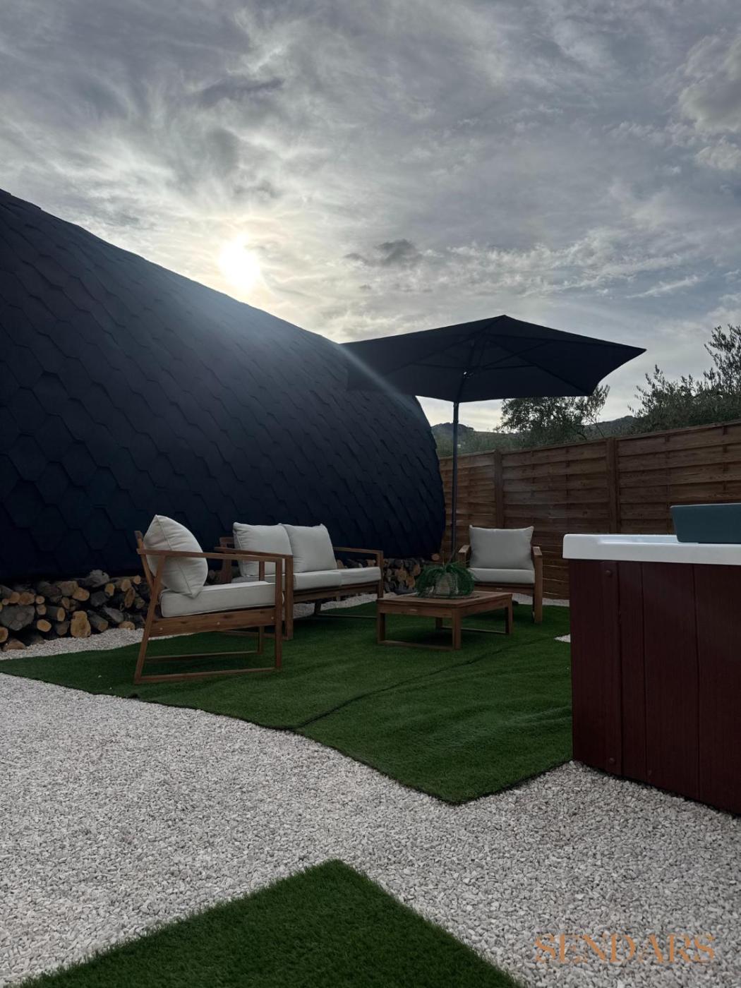 Casa con 1 dormitorio. This holiday home boasts a hot tub and a fireplace. Featuring a private entrance, this air-conditioned holiday home comprises 1 living room, 1 separate bedroom and 1 bathroom with a shower. The well-fitted kitchenette features a refrigerator, kitchenware, an oven and a microwave. This holiday home has a coffee machine, a sofa, a flat-screen TV and a patio. The unit offers 2 beds.