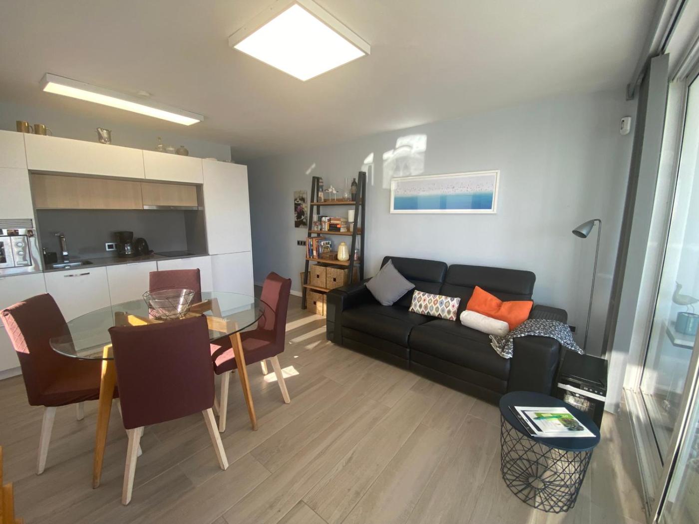 Este apartamento con aire acondicionado consta de 2 dormitorios, una sala de estar, una cocina totalmente equipada con nevera y cafetera, y 1 baño con bañera o ducha y albornoces. Hay toallas y ropa de cama en el apartamento.
