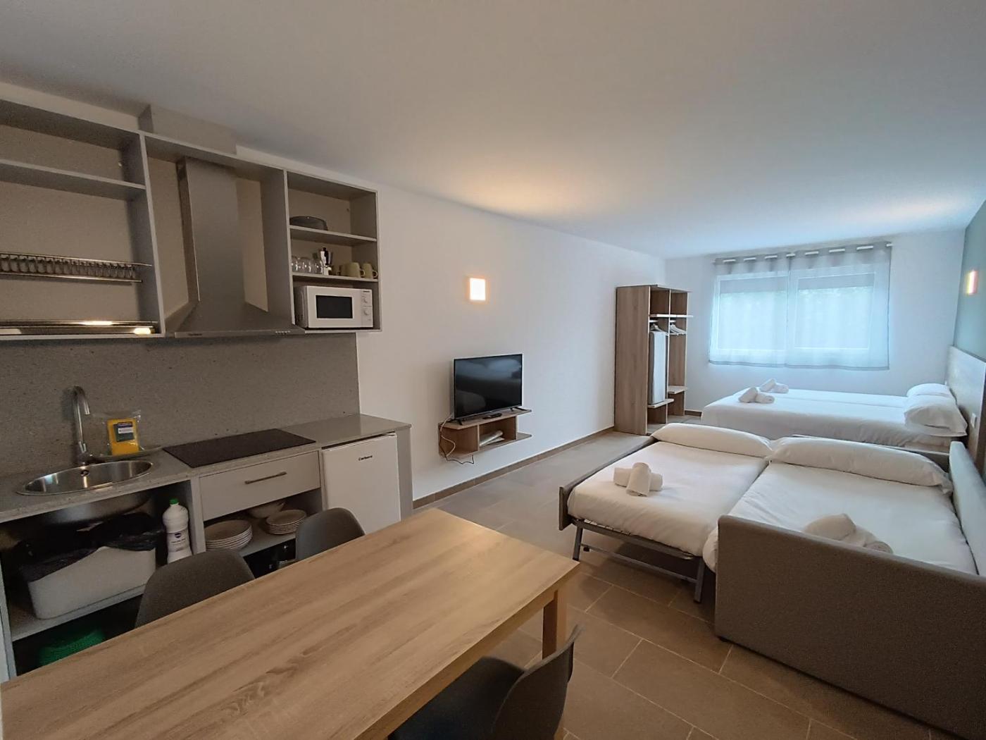 Estudio Triple Estándar. Featuring free toiletries, this studio includes a private bathroom with a shower and a hairdryer. In the well-fitted kitchen, guests will find a stovetop, a refrigerator, kitchenware and a microwave. This studio is air-conditioned and has a seating area with a flat-screen TV, a washing machine, a private entrance, a coffee machine, as well as a wardrobe. The unit has 2 beds. ;