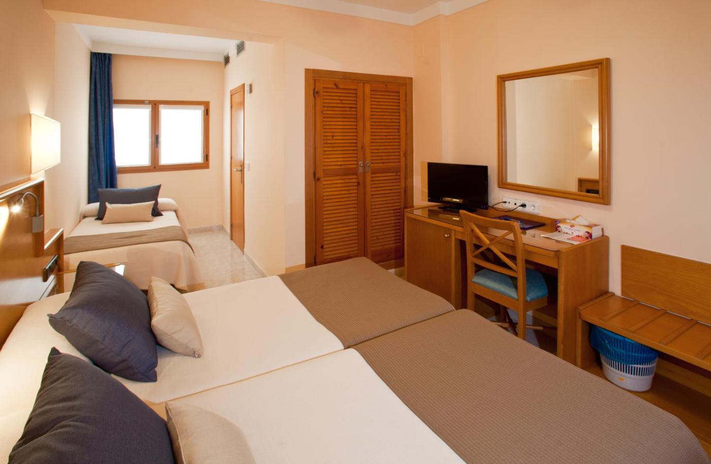 Habitación Doble con cama supletoria. Esta habitación cuenta con aire acondicionado, TV vÃa satélite, conexión gratuita a internet por cable y nevera. ;