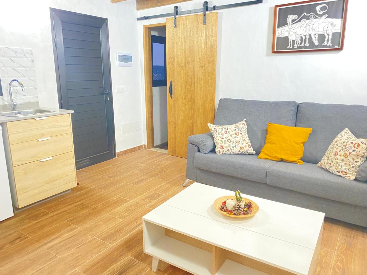 La casa o chalet cuenta con terraza y vistas a la montaña, y tiene 1 dormitorio, una sala de estar, TV de pantalla plana, una cocina equipada con nevera y microondas, y 1 baño con ducha. Hay toallas y ropa de cama en la casa o chalet.