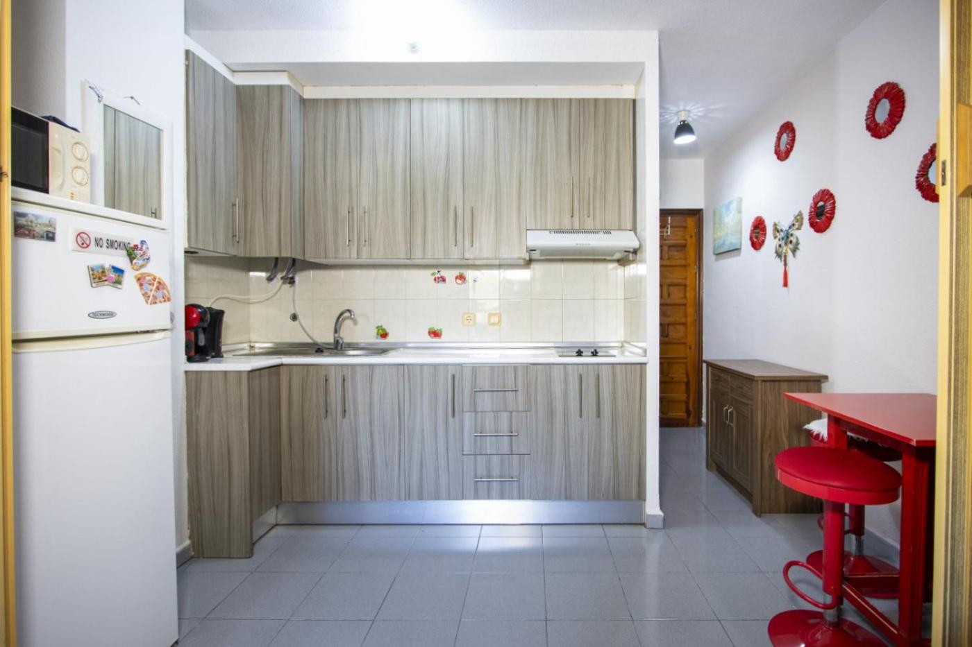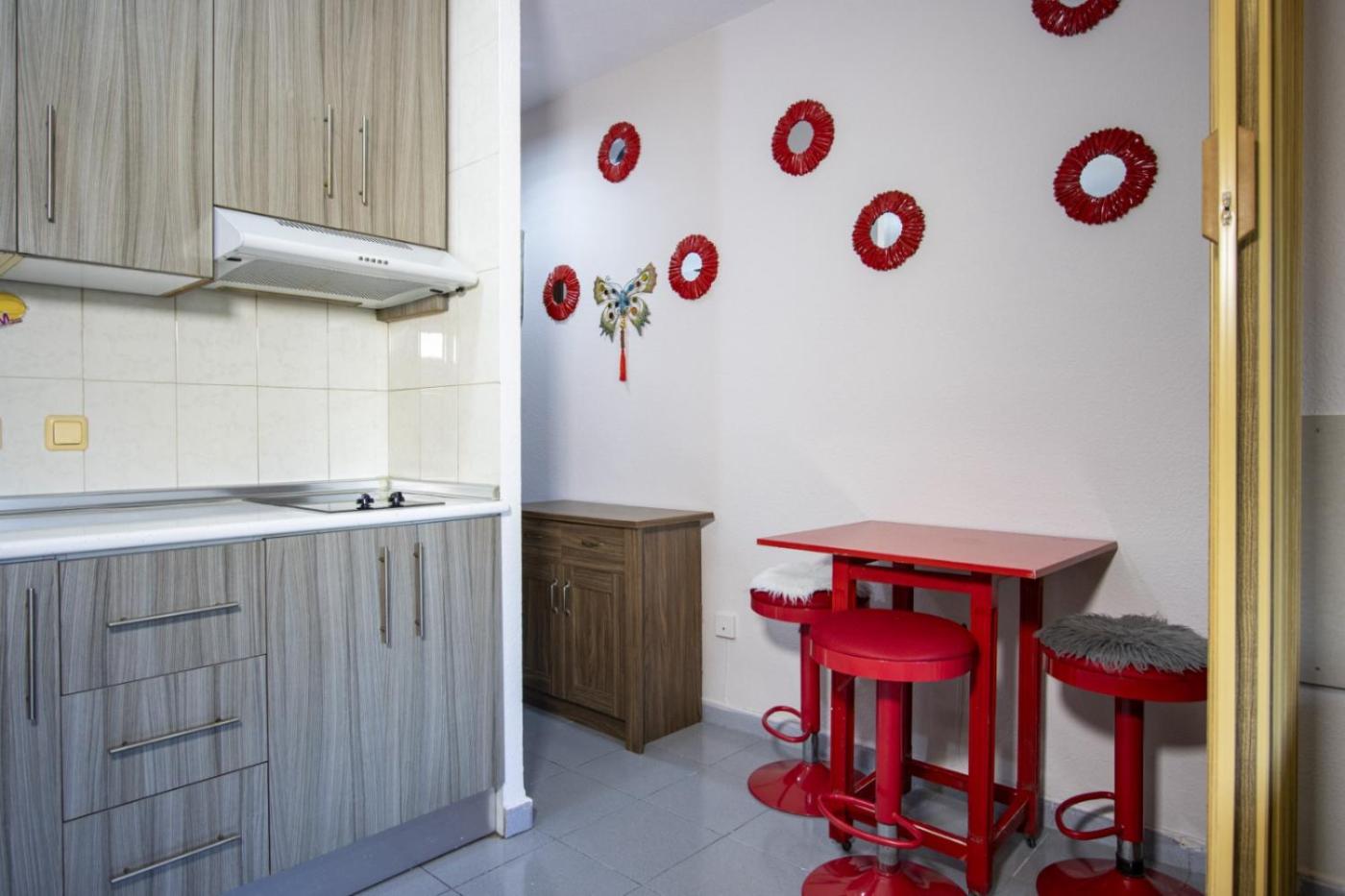 Estudio. The studio offers air conditioning, a washing machine, as well as a private bathroom boasting a bath and a hairdryer. The fully equipped kitchen has a refrigerator, kitchenware, a microwave and an electric kettle. Featuring a balcony, this studio also provides heating and a TV.