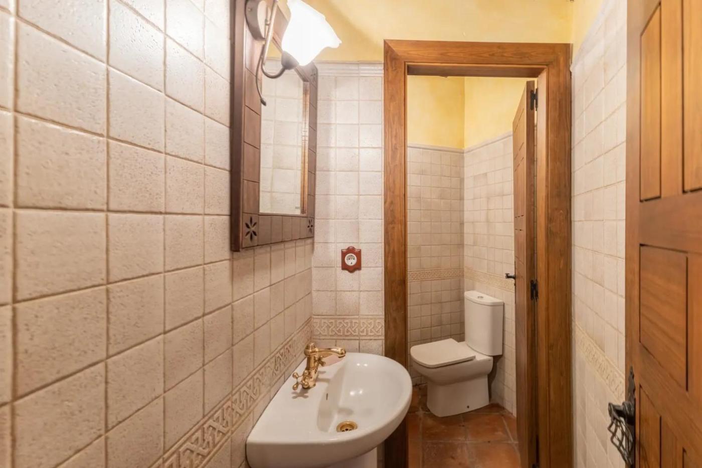 Esta casa rural con aire acondicionado consta de 7 dormitorios, una sala de estar, una cocina totalmente equipada con nevera y cafetera, y 2 baños con ducha y bañera de hidromasaje. Hay toallas y ropa de cama en la casa rural.